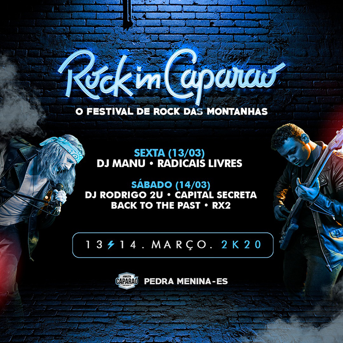 Está chegando mais uma edição do “Rock in Caparaó, o Festival de Rock das Montanhas”, que este ano acontece nos dias 13 e 14 de março no Armazém Caparaó, deck mais badalado da região, situado na Estrada Municipal do Caparaó em Pedra Menina, Dores do Rio Preto/ES.